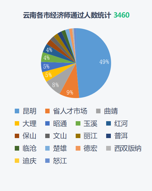 保山90;楚雄63;大理166;德宏50;迪庆18;红河143;昆明1680;丽江74;临沧64;怒江17;普洱69;曲靖285;文山74;西双版纳27;玉溪155;昭通165;省人才市场320