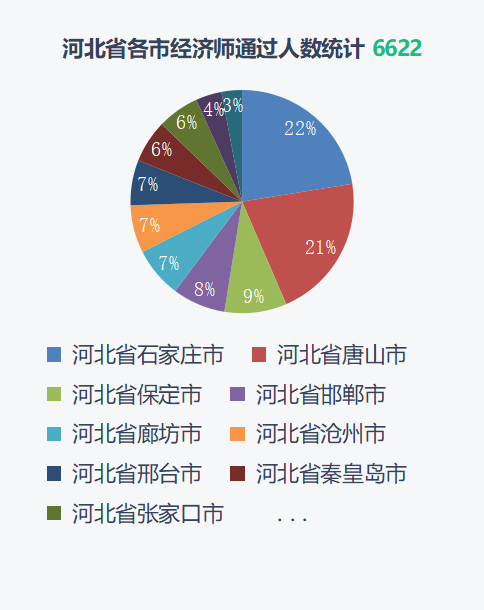 保定597;沧州459;承德196;邯郸508;衡水250;廊坊485;秦皇岛410;石家庄1487;唐山1396;邢台432;张家口402